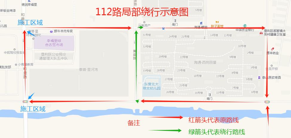 因東營區和墾利區部分道路封閉施工,公交車無法通行,自封閉之日起27路、29路、112路線路走向臨時作出調整。