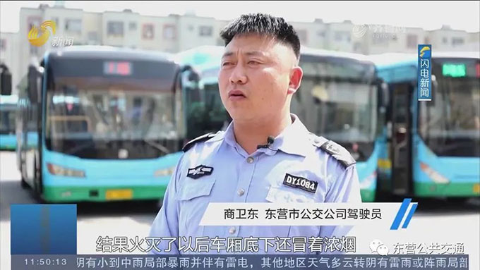 近日在東營,一輛正常行駛的車突然起火,而且是在車流量很大的道路中央。在等紅綠燈的東營公交駕駛員張學成和商衛東看到這一情況后,紛紛拿起車上的滅火器參與救援。