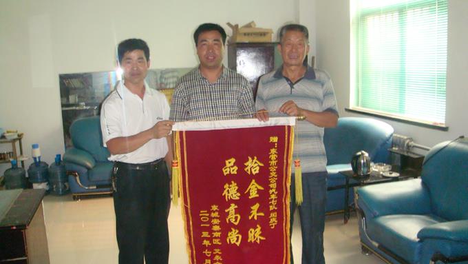 7月6日下午,市公交公司汽車七隊迎來一位老大爺,一手拿錦旗,一手提著沉甸甸的禮物,來到車隊領導辦公室,感謝拾金不昧的公交車駕駛員閔慶丁師傅。