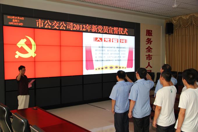 7月4日上午,市公交公司舉行了新黨員入黨宣誓儀式,11名新入黨的同志參加了此次宣誓儀式。儀式由公司黨辦主任王修云同志主持,公司黨委副書記劉海同志出席了本次儀式。