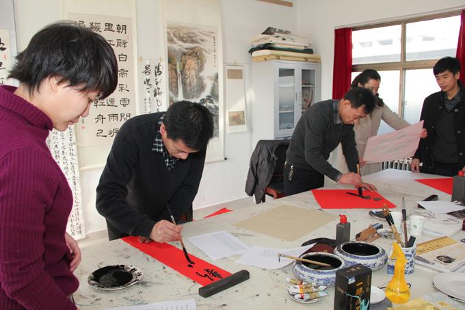 近日,市公交公司工會組織公司“書畫攝影社”開展了為2012年度“公司先進工作者”贈送春聯活動,號召一發出,廣大書畫攝影社成員都積極參與,書畫社社長及書畫社理事親自執筆,成員們有的裁紙,有的研磨,有的則忙著掛晾春聯,一片繁忙熱鬧的迎新春景象,一幅幅泛著墨香的春聯,讓過年的味道更加濃郁。春聯已于2月5日陸續送到各位先進手中。