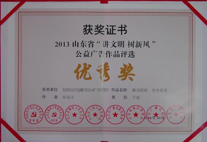 在剛剛揭曉的山東省第十四屆廣告節(jié)“講文明,樹新風(fēng)”公益類廣告作品評選中,市公交公司廣告部張瑞文設(shè)計的反腐倡廉主題作品“擦亮眼睛 勿食惡果”,獲得優(yōu)秀獎,這是繼本界廣告節(jié)“泰山杯”作品評選獲獎之后,市公交公司廣告部又一次獲獎。市公交公司廣告部重視設(shè)計人員創(chuàng)作水平的提高,通過多渠道、多方式提高設(shè)計人員的創(chuàng)作水平,至今,已在省級評選中多次獲獎,一批批優(yōu)秀的作品正不斷涌現(xiàn)。