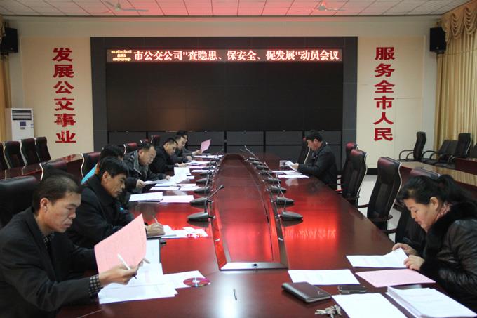 1月10日上午,市公交公司召開了各基層工會主席參加的動員會,會議部署了“查隱患”活動的具體實施方案,傳達了市交通運輸局工會主席針對本次活動的講話精神,公司工會主席和安保科長對活動進行了具體強調,并作了具體分工。