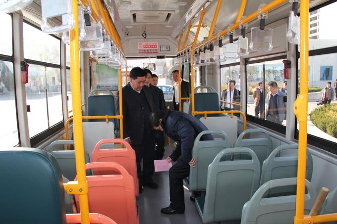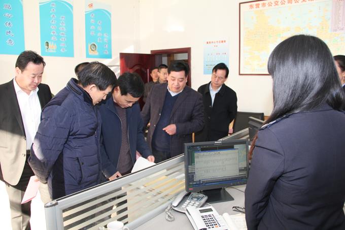 3月14日下午,市人大常委會副主任閆樹信帶領人大環城委調研組一行在市交通運輸局局長燕乃敏等相關領導的陪同下,到市公交公司進行了調研指導。調研組一行來到東營公交智能調度指揮中心,首先由市公交公司經理朱新民同志簡要介紹了近年來東營公交各方面的工作,而后調研組一行來到8309111公交服務中心,進行了現場觀摩。最后,調研組一行來到車場,現場觀摩了公交車內的各項服務設施并提出了寶貴意見和建議。