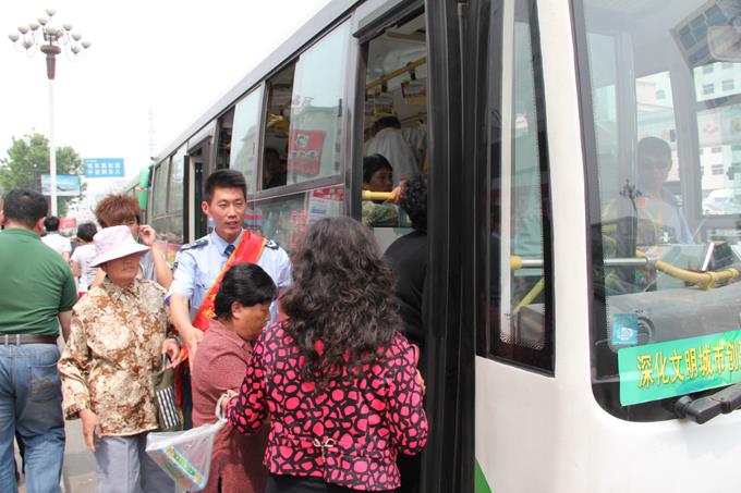 市公交公司組織職工到公交站點進行文明乘車引導