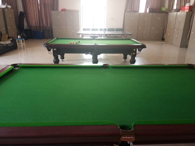 由于臺球有眾多的愛好者,使用頻繁,又加之有不少初學者不能掌握正確的使用方法,用球桿擊打母球時經(jīng)常出現(xiàn)“爆桿”并戳到桌布上,加速了臺球設(shè)施的損壞,致使臺球桌無法使用??吹竭@一情況,雷鋒小組成員出資對臺球桌更換了新的桌布、一組臺球、一根架桿、六個球籠和六個桌腿墊子等一系列相關(guān)配件。