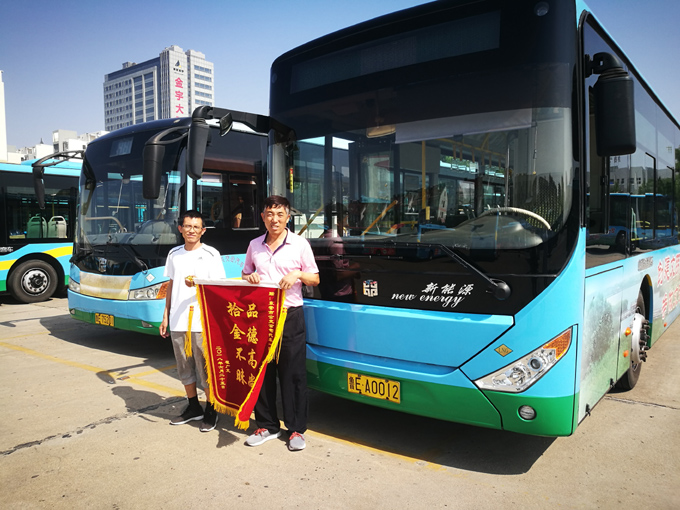 2018年6月29日上午,翟先生拿著一面寫有“品德高尚、拾金不昧”的錦旗來到市公交公司汽車一隊,感謝3路駕駛員蓋曉龍師傅拾金不昧的高尚品德。