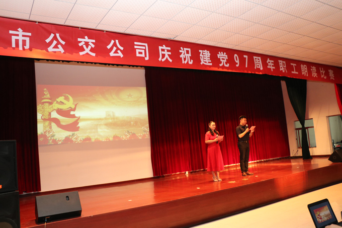 誦讀千古美文,傳承華夏文明。為豐富職工的業余文化生活,提高職工的人文素養,倡樹文明新風,傳遞正能量,7月20日下午,東營市公交公司舉辦了以“書香溢滿人生路 我們都是朗讀者”為主題的職工朗讀比賽。本次比賽是公司慶祝建黨97周年主題活動之一,聘請了公司領導和各分工會主席擔任評委,另有各分工會推薦的共40名職工組成的大眾評審團參加評比打分,來自公司8個分工會推薦的17名選手參加了比賽。