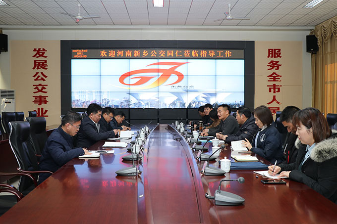 1月8日,河南新鄉(xiāng)市公交集團(tuán)總經(jīng)理甄建軍等一行9人到市公交公司考察學(xué)習(xí),市公交公司黨委書記、經(jīng)理朱新民出席座談交流會(huì)并講話,副經(jīng)理孫紅光、景洪培以及有關(guān)科室負(fù)責(zé)人列席會(huì)議。
