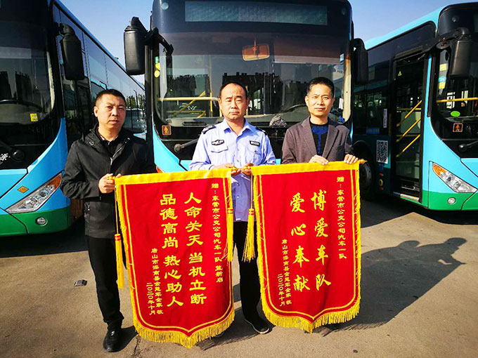 10月4日上午11:30時,市公交公司汽車一隊駕駛員藍新啟駕駛魯EA3802車運行118路任務,當行駛至膠州路公交公司站點減速靠邊時,發現路邊有一個人倒在地上,揮手示意。藍新啟立即靠邊停車,快步從車上跑下來,發現是一個老人倒在地上。藍新啟詢問老人怎么回事,老人口齒不清。藍新啟立即撥打110、120急救電話,又與另外兩名乘客一起將老人扶坐起來,等待110、120到來。110、120到來后,藍新啟幫助將老人抬上救護車,又繼續運行任務。
