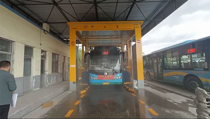 該洗車機為5刷通道式洗車機,造型簡單美觀,整體尺寸小,該洗車機的投入使用大大減輕了工作人員的勞動強度,提升了公交服務水平,保證了車輛環境衛生整潔、干凈,。為下一步公交車的車容車貌提升、公交服務水平提升將發揮重要作用。