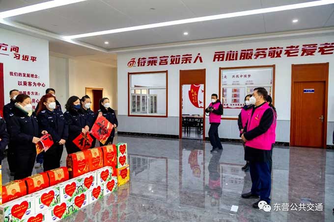 在新春佳節(jié)到來之際,1月20日上午,市婦聯(lián)黨組書記、主席侯麗霞帶領(lǐng)市婦聯(lián)、東營農(nóng)商行組成的慰問隊(duì)到市公交公司進(jìn)行“黃河口過大年”送溫暖活動(dòng),看望慰問堅(jiān)守在工作崗位的一線公交駕駛員,并致以新春的問候與祝福。候麗霞詳細(xì)了解了一線公交駕駛員的身體狀況和家庭生活情況,叮囑公交駕駛員要做好疫情防控,合理安排好工作和休假,祝愿大家度過一個(gè)快樂祥和的春節(jié)。同時(shí),還送上春聯(lián)、牛奶、八寶粥等慰問物資。
