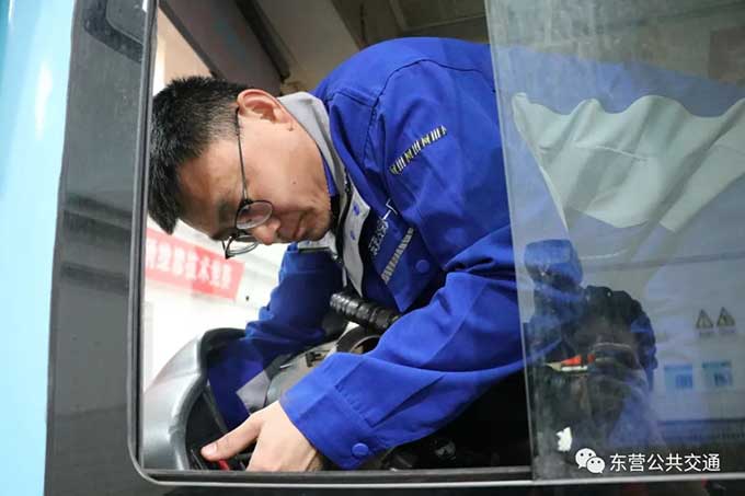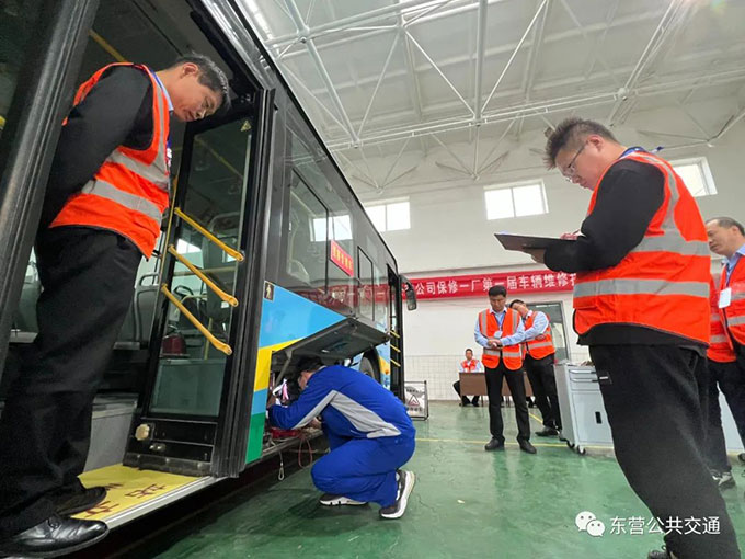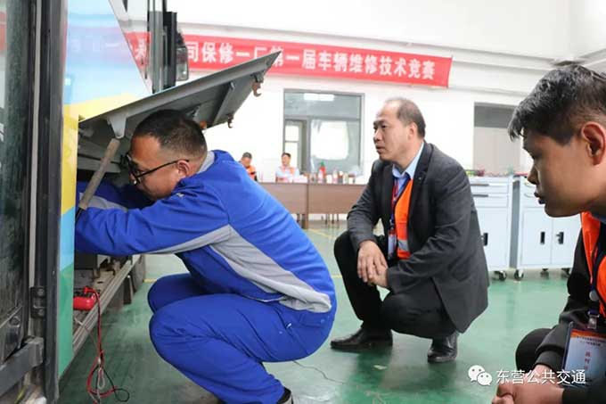 為保證比賽的公平性,本次比賽理論考試試題開考前20分鐘出題打印,實操比賽裁判由多次參加省內(nèi)公交維修技術(shù)比武的裁判和選手擔任,并邀請中通客車廠售后服務(wù)經(jīng)理李延營同志擔任主要評分人員。