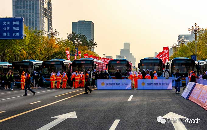 東營市公交集團為確保馬拉松比賽順利開展,精心組織,認真謀劃,多措并舉,提前部署保障方案,制定志愿者接送方案以及車輛現場調度方案,分解細化責任,明確注 意事項,定人、定車、定時、定點,任務到人、到區域、到路段,共派出94輛公交車全力保障賽事用車。