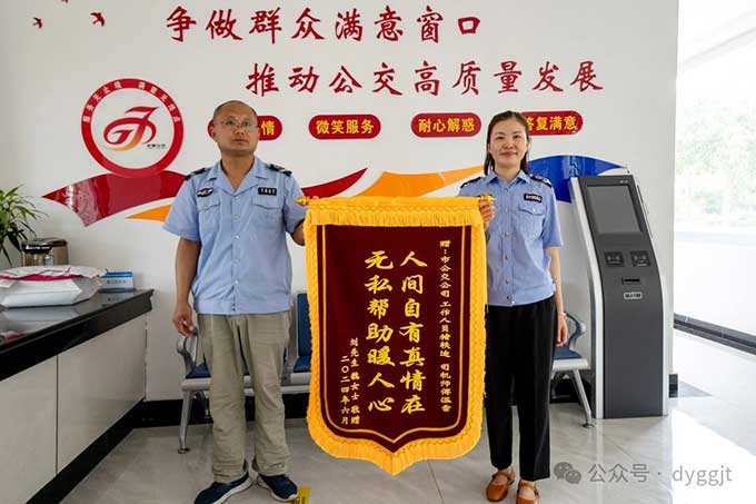 6月27日,市民劉先生和魏女士將一面印有“人間自有真情在 無私幫助暖人心”的錦旗,送到市公交集團客服中心,以感謝市公交集團客服中心與汽車一隊接力幫助尋找孩子的暖心事跡。