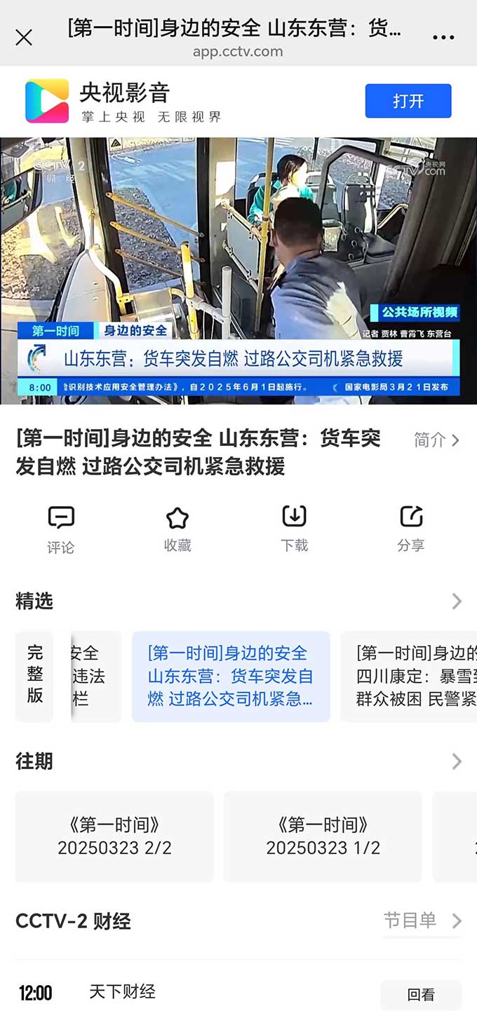 央視新聞|山東東營:貨車突發自燃 路過公交司機緊急救援