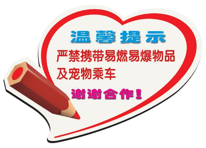為了深入貫徹落實(shí)“兩保兩樹”活動(dòng)精神,切實(shí)做到保乘客安全,樹公交形象,近日,市公交公司廣告部陸續(xù)在公交車身廣告畫面的車前門上車處添加了溫馨提示語,提醒廣大乘客不要攜帶易燃易爆等危險(xiǎn)品及寵物乘坐公交車。提示語以白色心形為底色,加以紅色文字,既美觀醒目,規(guī)范統(tǒng)一,又很好地喚起了乘客的公共安全意識,確保了市民的出行安全。