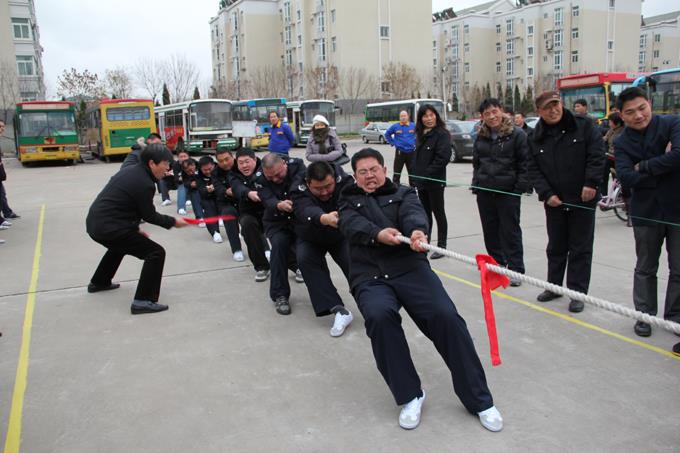 為了加強公司各單位之間的聯系,增強職工的集體榮譽感,提高職工的身體素質,市公交公司分別于11月28、29日組織了拔河比賽。比賽分男女兩隊,男子組有九個代表隊,女子組有六個代表隊,共計一百五十多人參加了此次比賽。