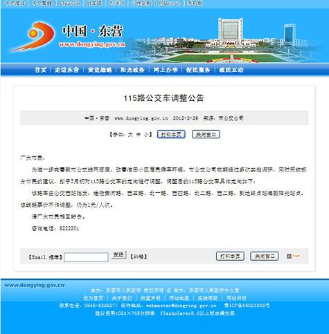 2012年2月29日東營市政府網站報道