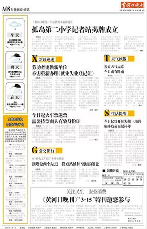 2012年3月1日《黃河口晚刊》報道
