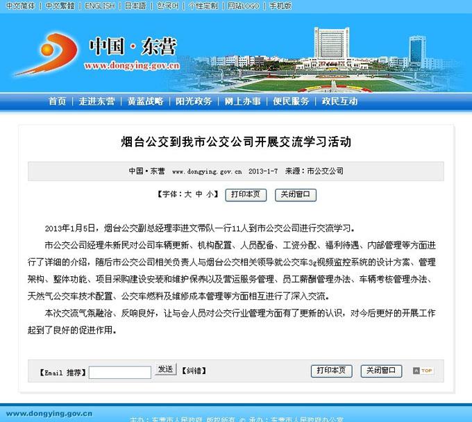 2013年1月7日東營市政府網站報道