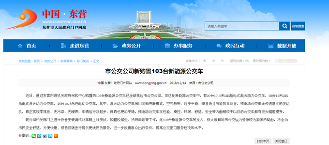 2018年12月14日東營市政府網站報道